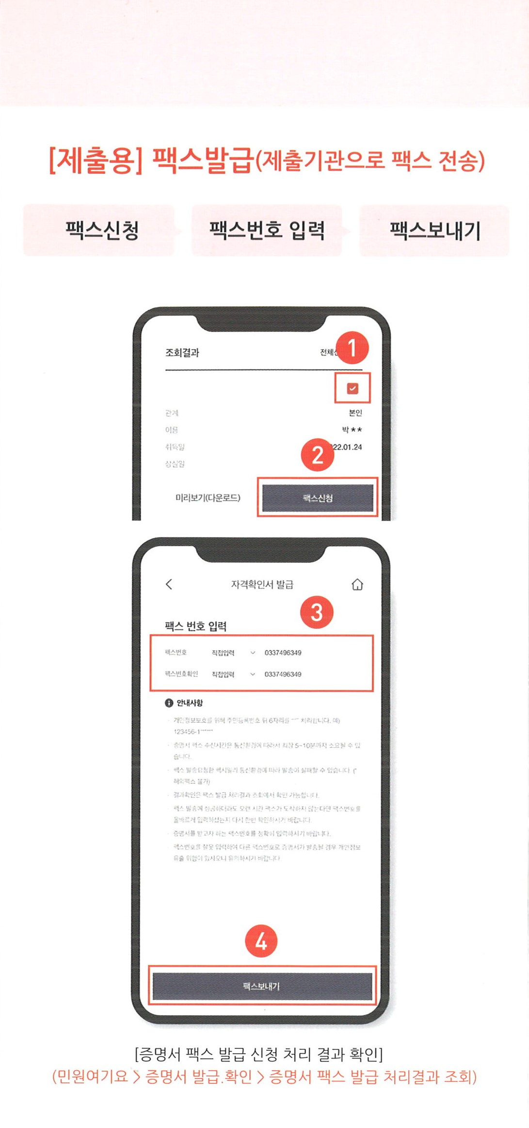 제출용 팩스발급(제출기관으로 팩스 전송)