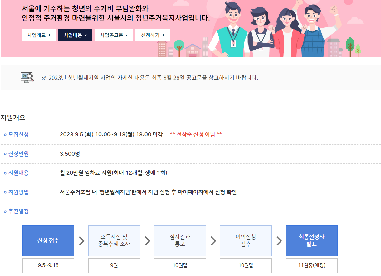 - 23년 이전 서울시 청년월세지원 기 선정(수급) 자, 국토교통부 청년월세 한시 특별지원 선정(수급) 자 및 23년 은평형 청년월세 선정(수급) 자는 지원불가